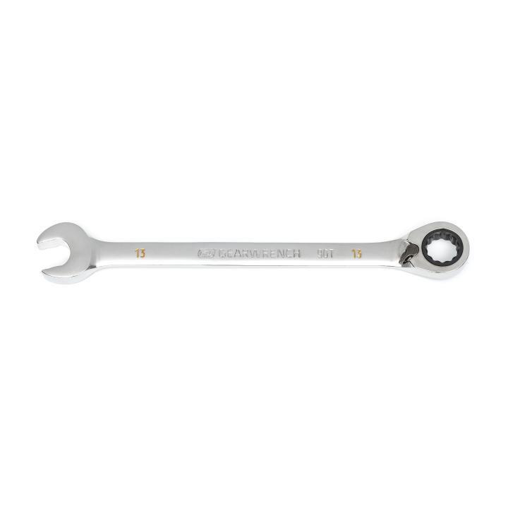GEARWRENCH 90-tooth reversible ratcheting wrench swing arc of just 4° turns fasteners in extremely tight spaces. Longer, wider beam delivers improved reach, leverage, and comfort. Large color-coded SAE/metric markings make size identification easy. All exceed ASME performance specs and come with the trusted GEARWRENCH Full Lifetime Warranty.