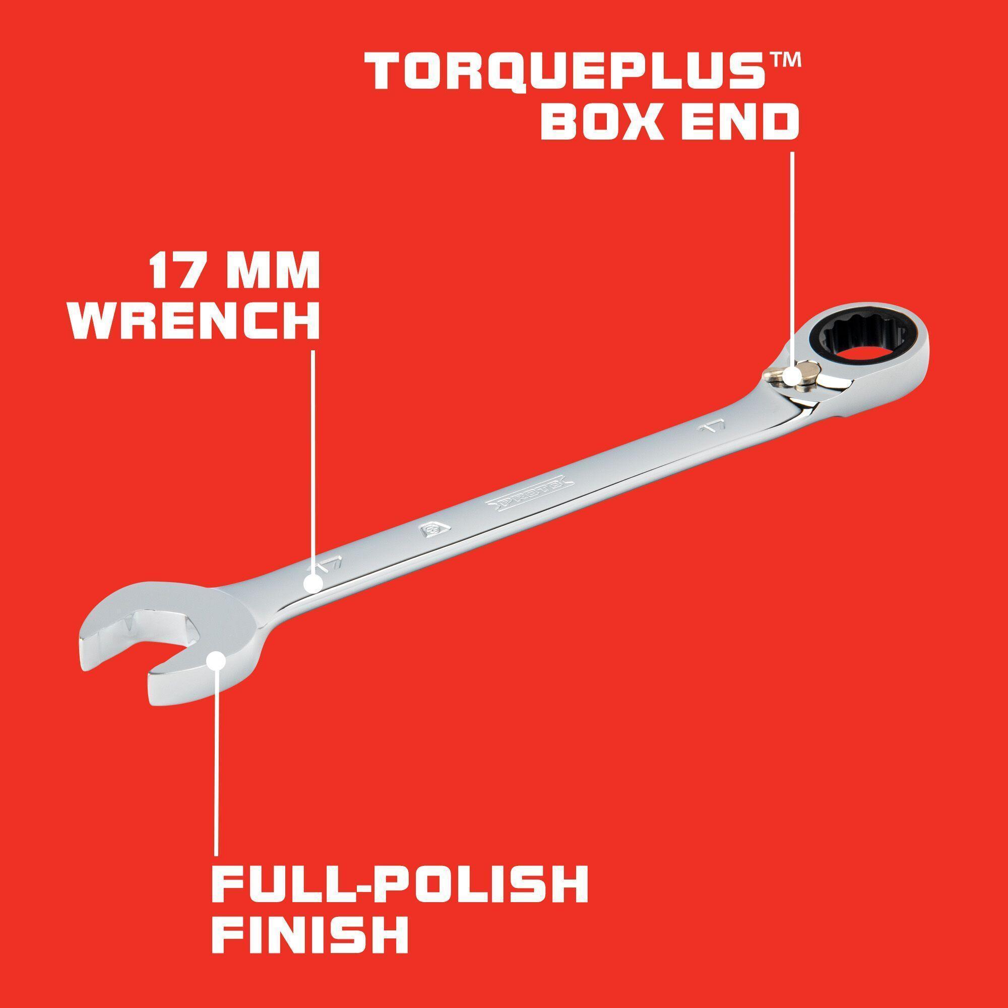 Proto® JSCVM17T Reversible Spline Combination Wrench, 17 mm, 12 Points, 15 deg Offset, 8-7/8 in OAL, Forged Steel, Full Polished, ASME Specified