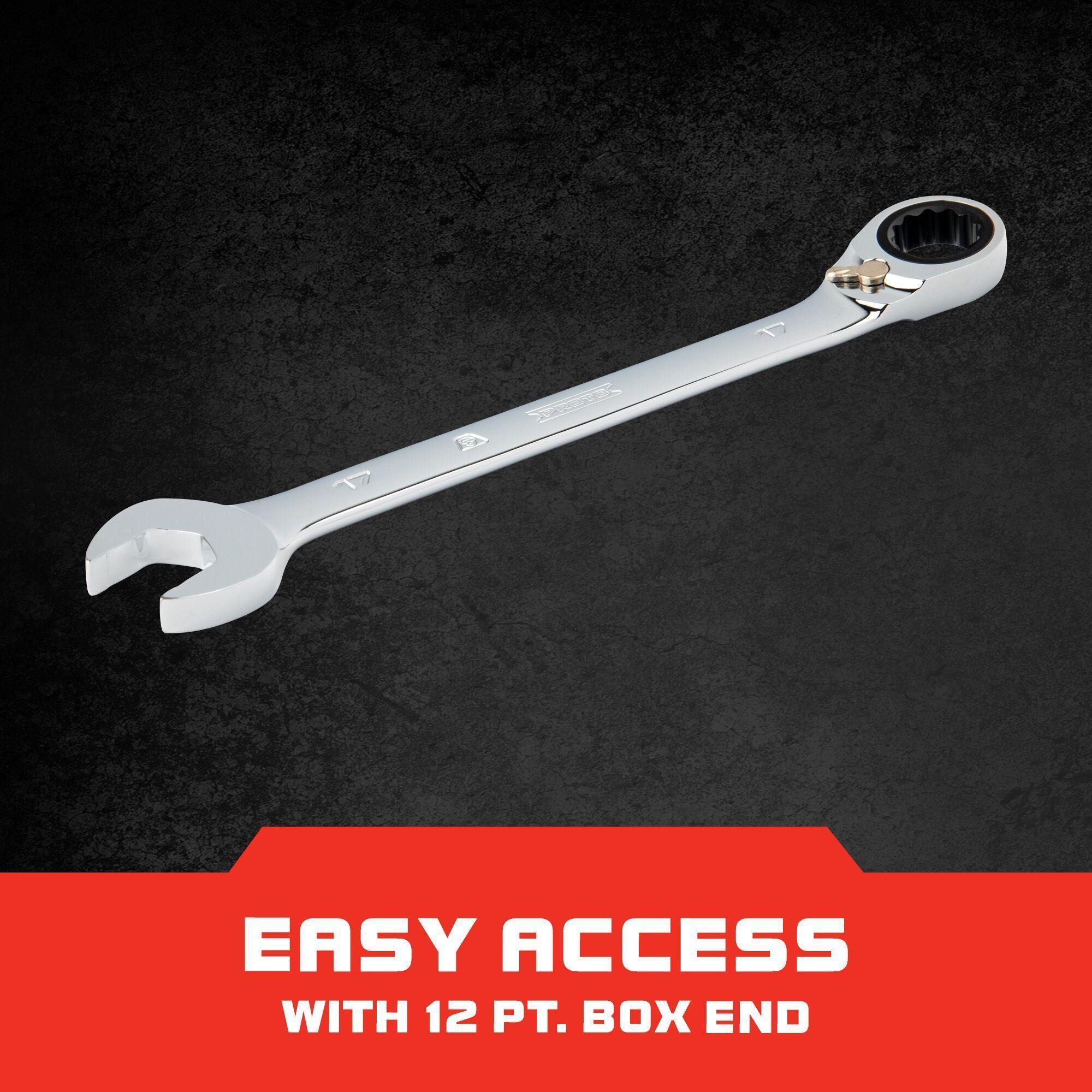 - 15 deg angled offset box end helps keep shank clear of obstructions