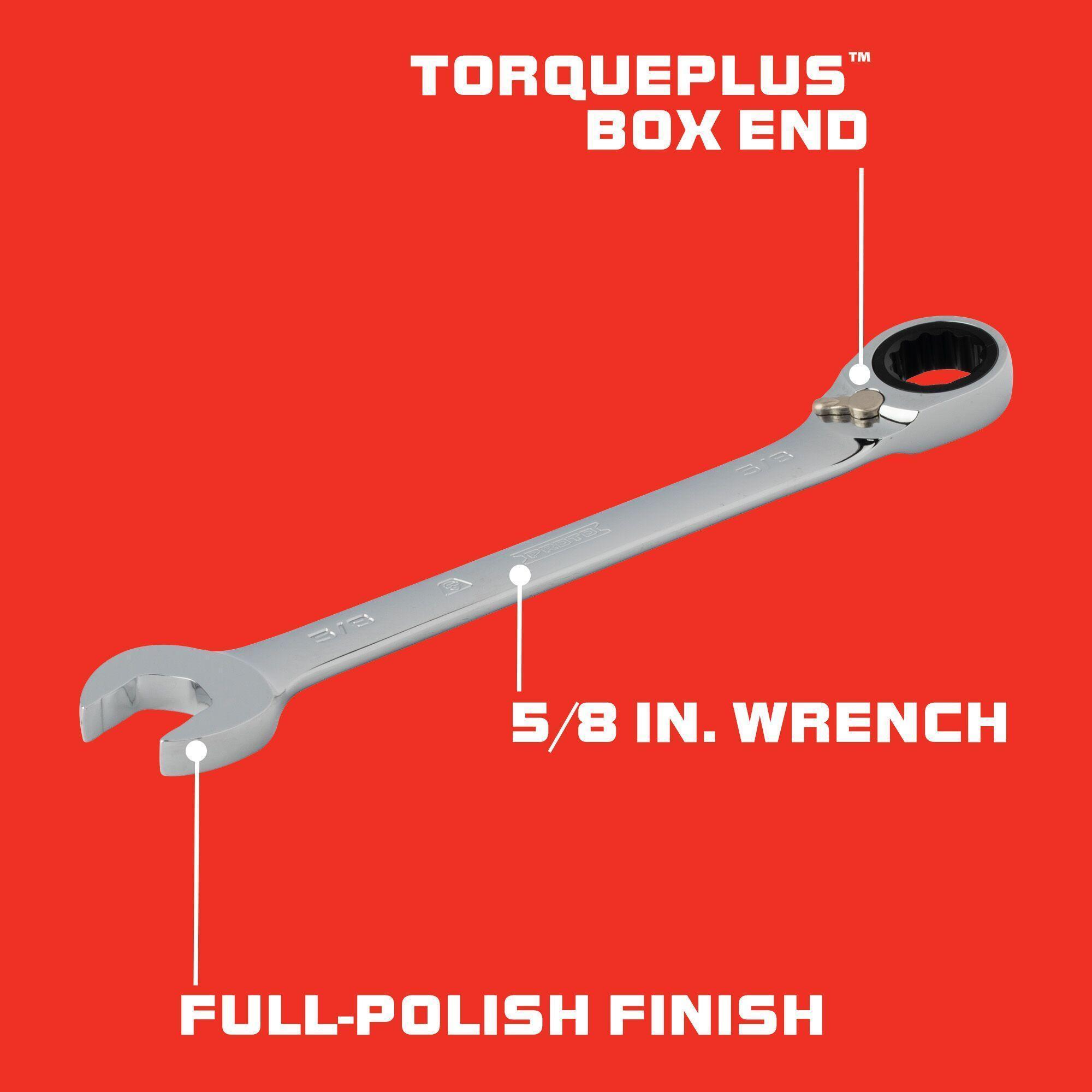 Proto® JSCV20T Reversible Spline Combination Wrench, 5/8 in, 12 Points, 15 deg Offset, 8-3/16 in OAL, Forged Steel, Full Polished, ASME Specified
