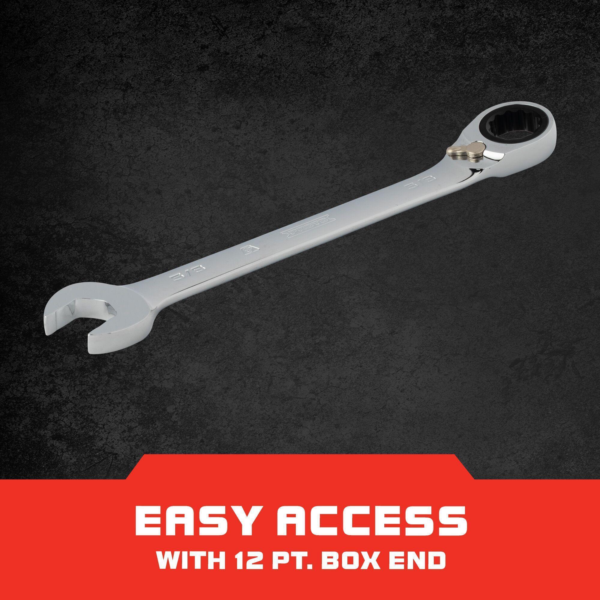 - 15 deg angled offset box end helps keep shank clear of obstructions
