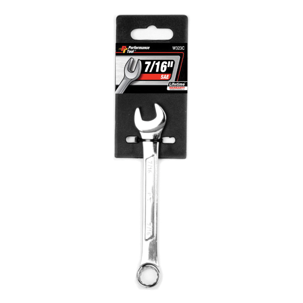 Performance Tool™ W323C Combination Wrench, 7/16 in, Alloy Steel, Polished Chrome