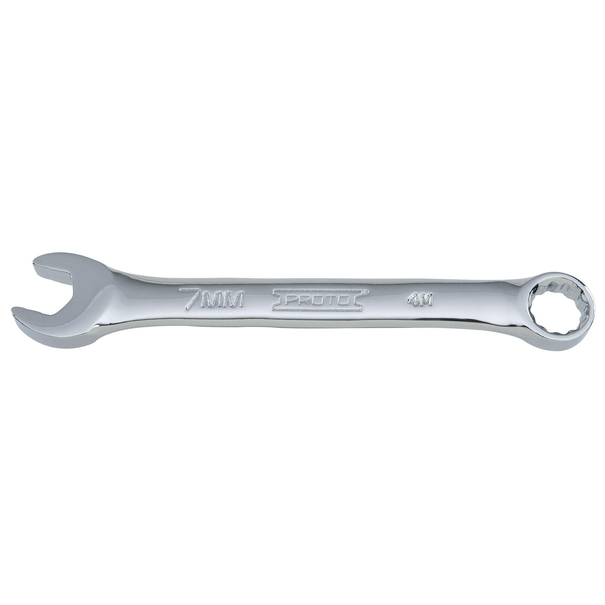 Proto® TorquePlus™ J1207MES Combination Wrench, 7 mm Wrench, 12 Points, 15 deg Offset, 3-3/8 in OAL, Alloy Steel, Full Polished, ASME B107.100-2010