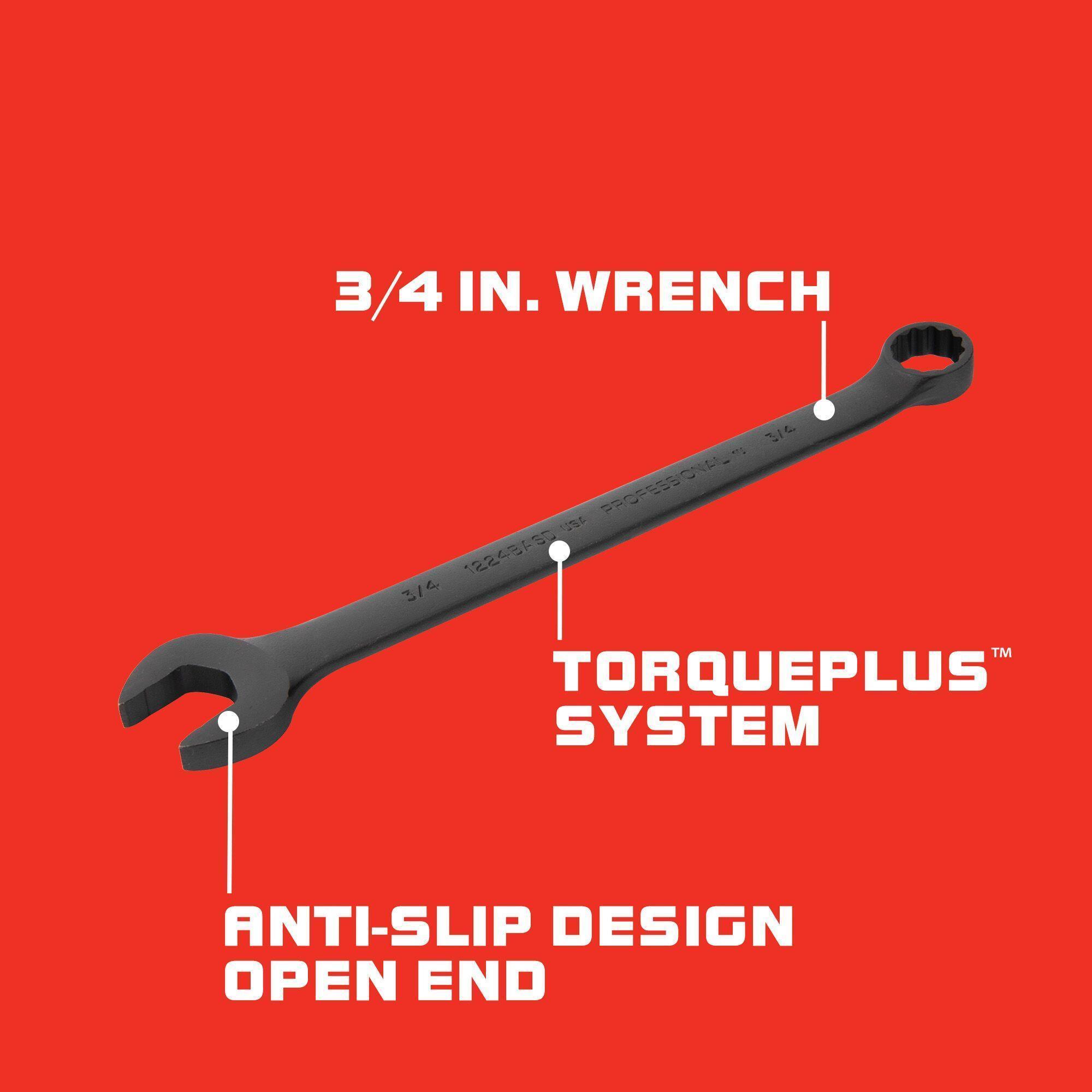 Proto® TorquePlus™ J1224BASD Anti-Slip Design Combination Wrench, 3/4 in Wrench, 12 Points, 15 deg Offset, 11 in OAL, Alloy Steel, Black Oxide, ASME B107.100