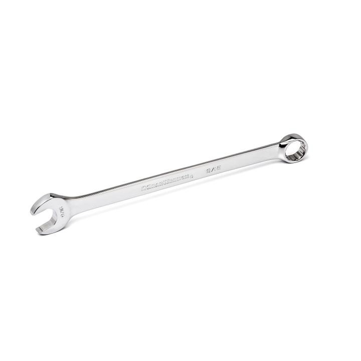 GEARWRENCH® 81657 Long Length Open End Combination Wrench, 9/16 in Wrench, 12 Points, 15 deg Offset, 8.74 in OAL, Premium Alloy Steel, Polished Chrome