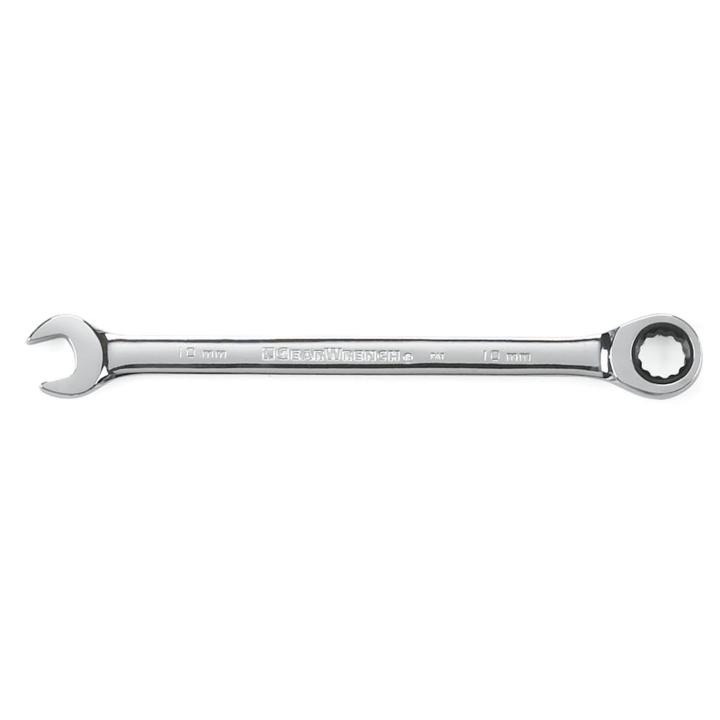 GEARWRENCH® 9110D Open End Regular Length Combination Wrench, 10 mm Wrench, 12 Points, 0/15 deg Offset, 6.256 in OAL, High Alloy Steel, Polished Chrome