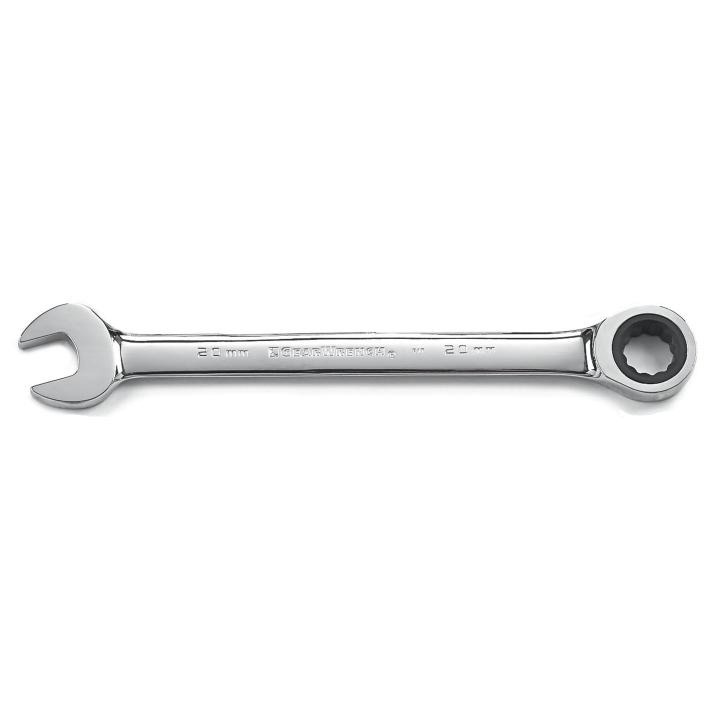 GEARWRENCH® 9120 Open End Regular Length Combination Wrench, 20 mm Wrench, 12 Points, 0/15 deg Offset, 11.476 in OAL, Polished Chrome
