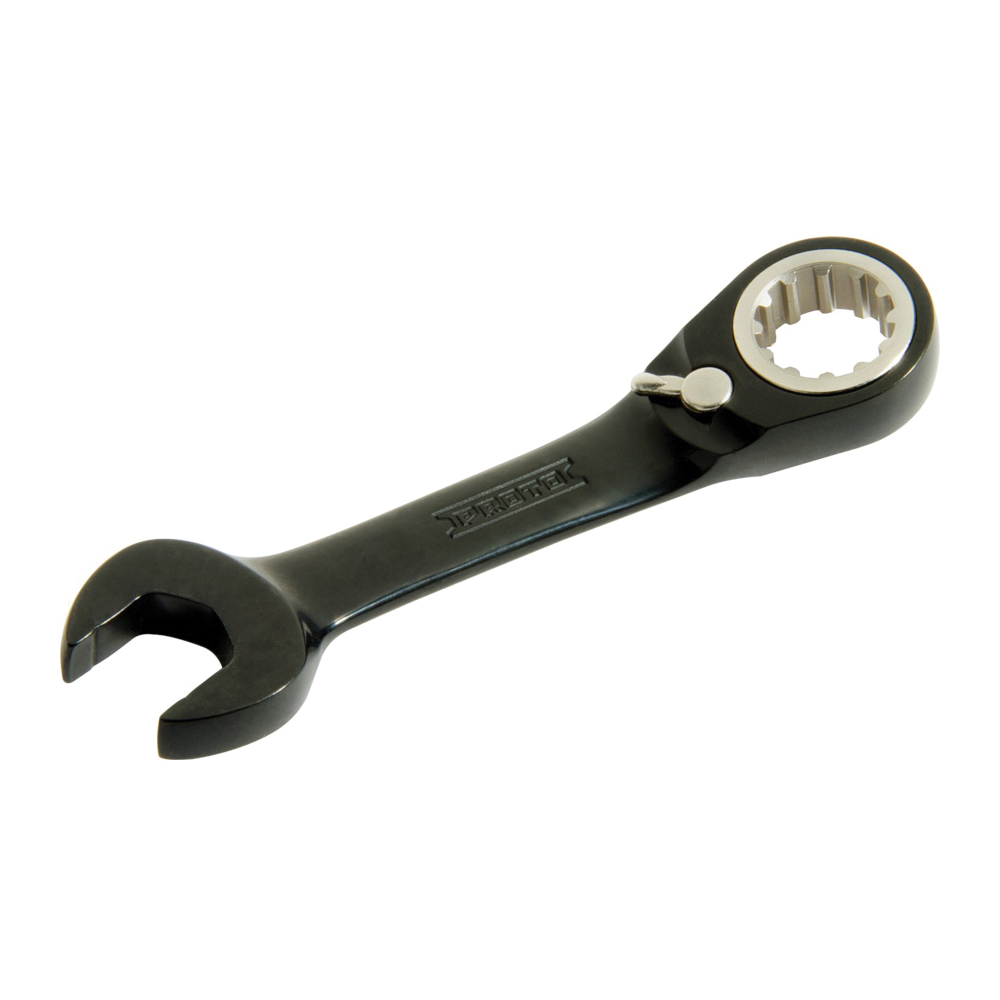Proto® JSCV20S 1-Piece Straight Stubby Wrench, 5/8 in Wrench, 12 Points, 15 deg Offset, 4-7/8 in OAL, Alloy Steel, Black Chrome, ASME