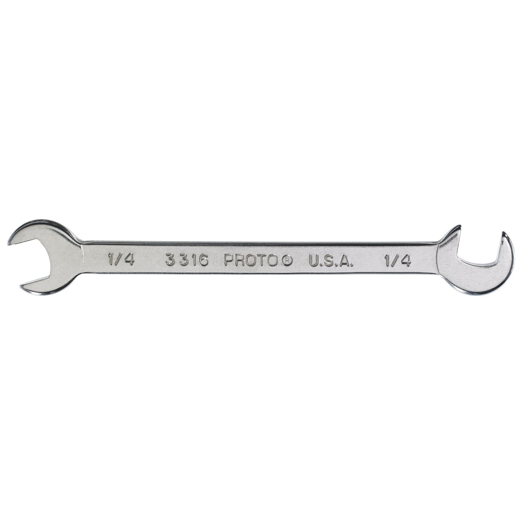 Proto® J3316 Short Open End Wrench, 1/4 in Wrench, Angled/Double Head, 3 in L, Alloy Steel, Satin, ASME B107.100