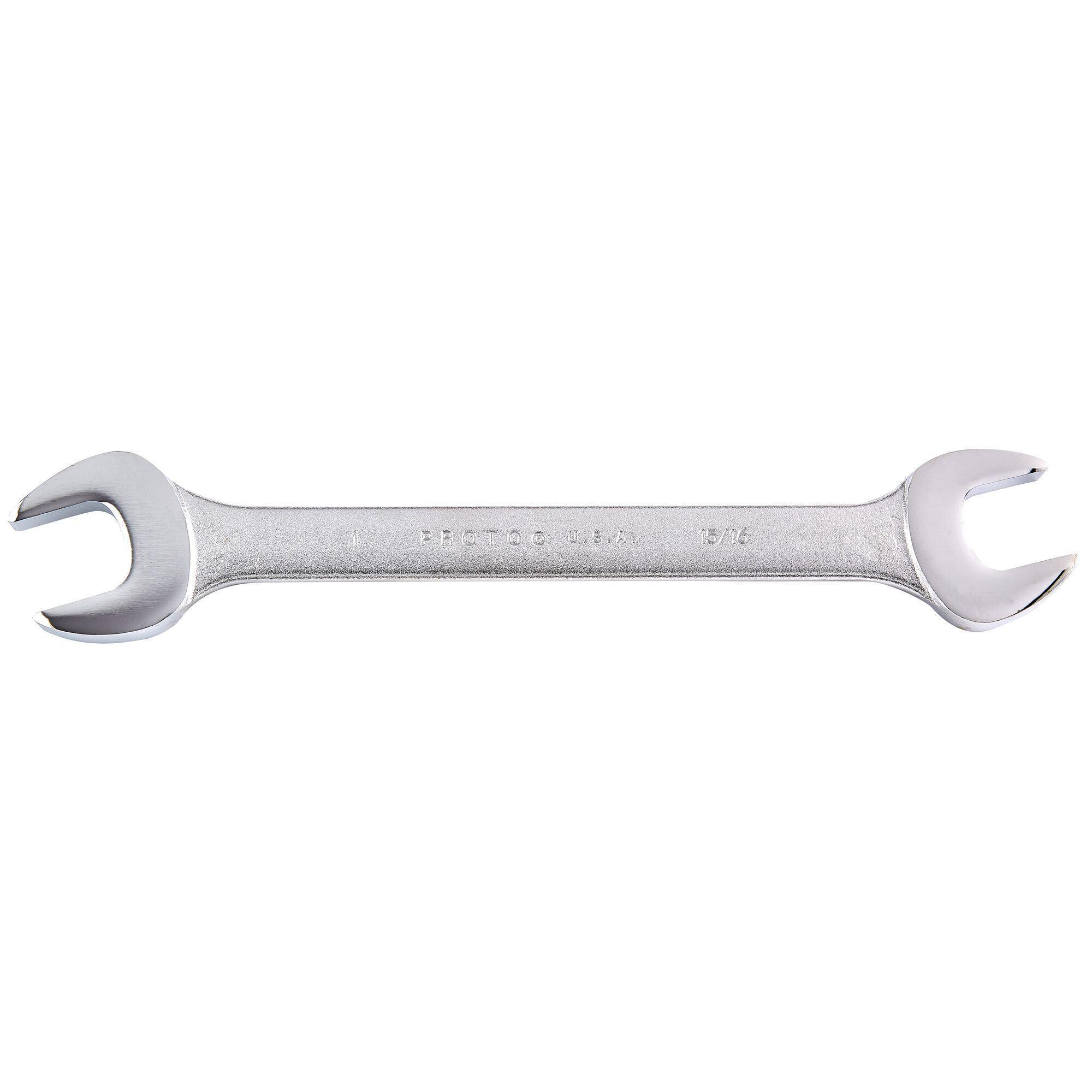 Proto® J3045 Open End Wrench, 15/16 x 1 in Wrench, Angled/Double Head, 11-23/64 in L, Alloy Steel, Satin, ASME B107.100, ANSI B107.6, Federal GGG-W-636E