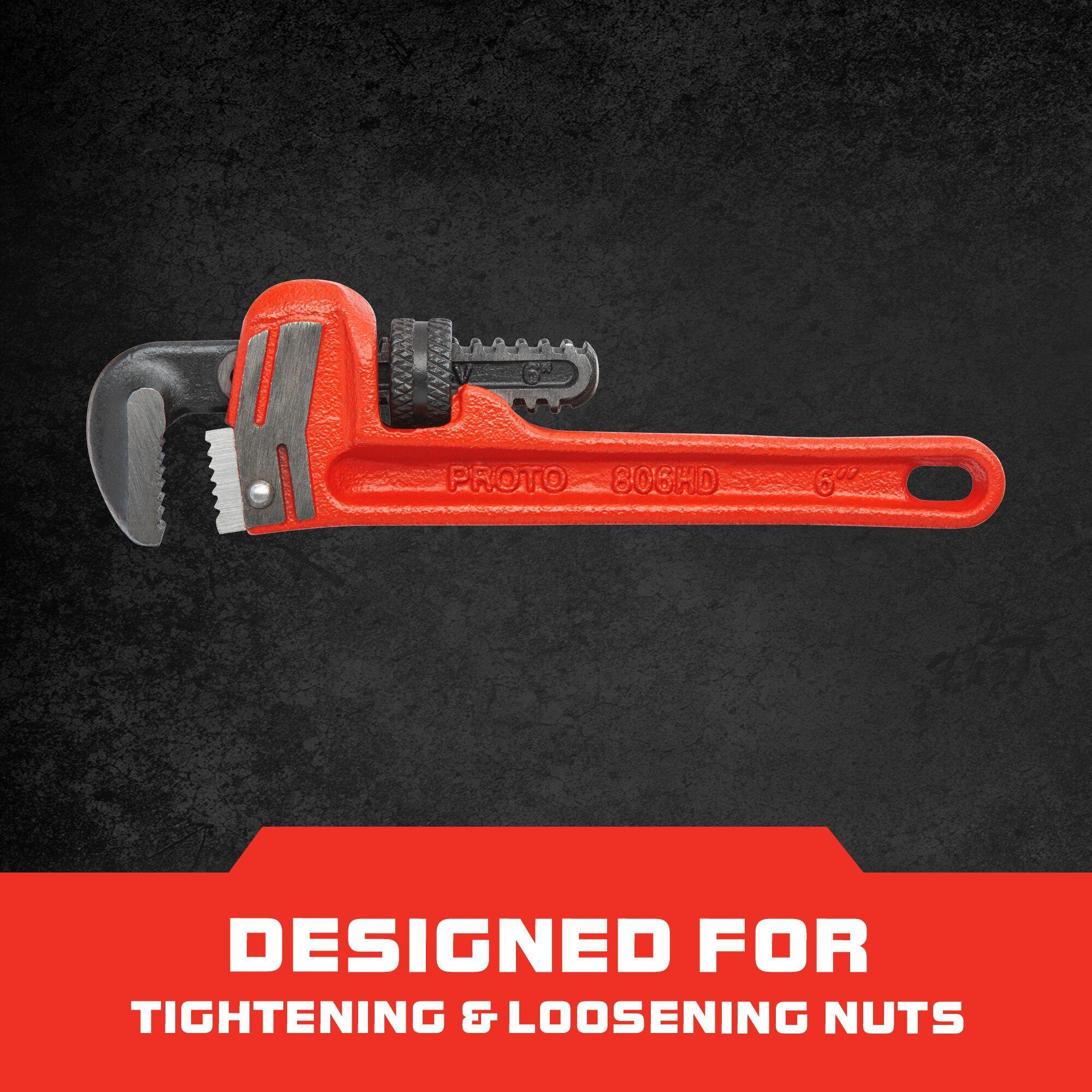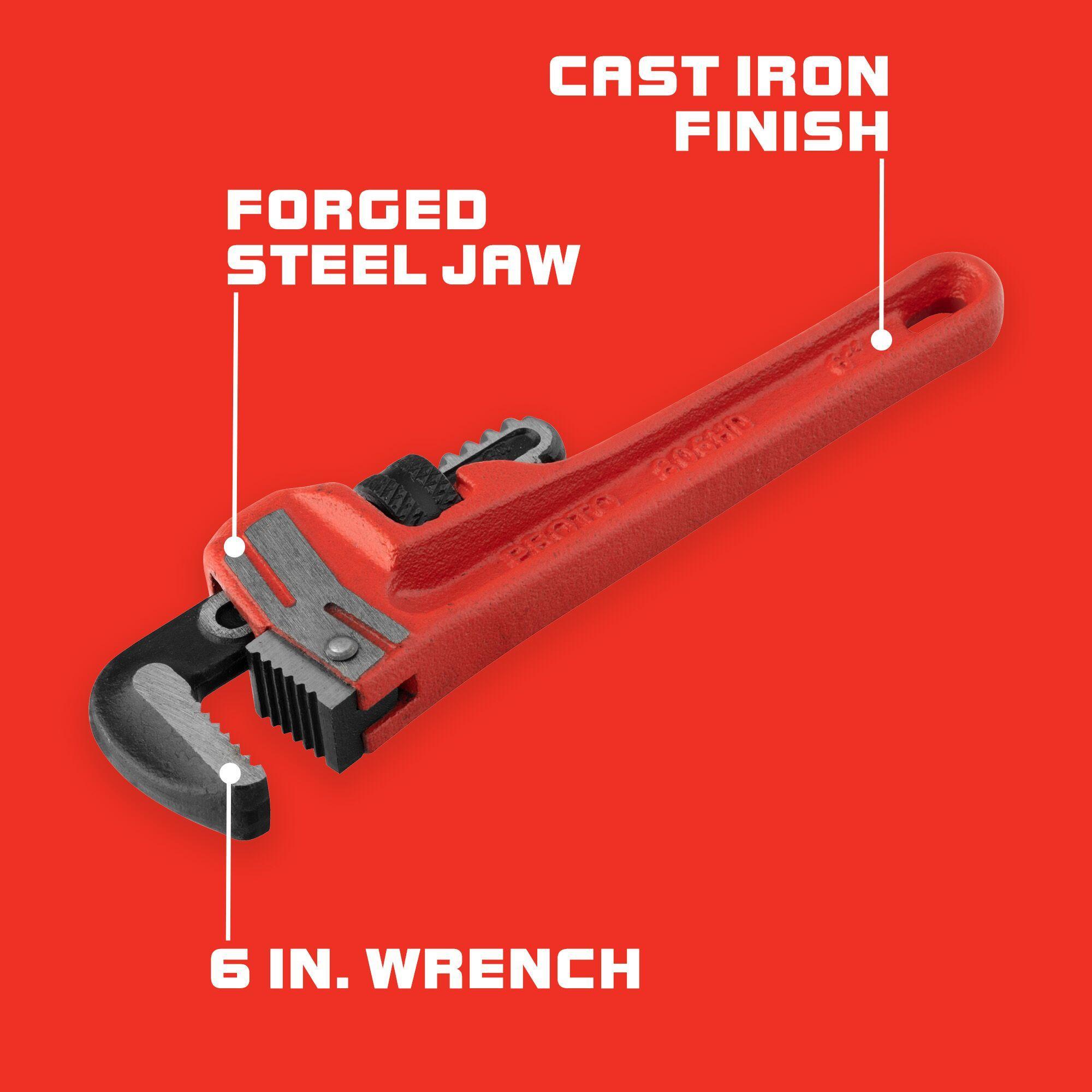 Proto® J806HD Heavy Duty Straight Pipe Wrench, 6 in OAL, Floating Hook Jaw, Cast Iron Handle, Federal GGG-W-00651D