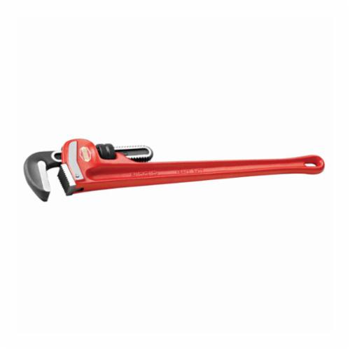 RIDGID® 31045 Heavy Duty Straight Pipe Wrench, 8 in Pipe, 60 in OAL, Floating Forged Hook Jaw, Ductile Iron Handle, Knurled Nut Adjustment, Red