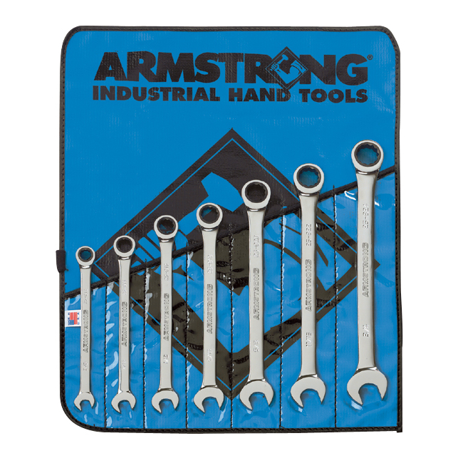 7-PIECE 12-POINT FULL POLISH RATCHETING COMBINATION WRENCH SET - ARS25661>