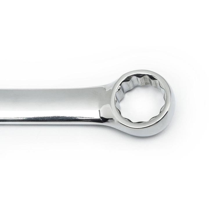 The GEARWRENCH combination wrenches are durable tools for most jobs. They are made from alloy steel with either a full polish or satin finish that resists rust & corrosion. The off-corner loading design on both ends provides a stronger grip on fasteners, reduces fastener rounding, and delivers up to 25% more torque to the fasteners. Sizes are stamped on the beam for quick, easy, & permanent identification. The box end is offset 15° for increased access to fasteners. Available in stubby & long pattern lengths and 6 & 12 point, the GEARWRENCH combination wrenches are a must have for every toolbox.