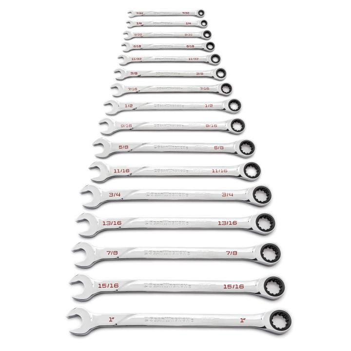 GEARWRENCH® 86451 XL Series Extra Long Length Universal Combination Ratcheting Wrench Set, 16 Pieces, 7/32 to 1 in, Polished Chrome