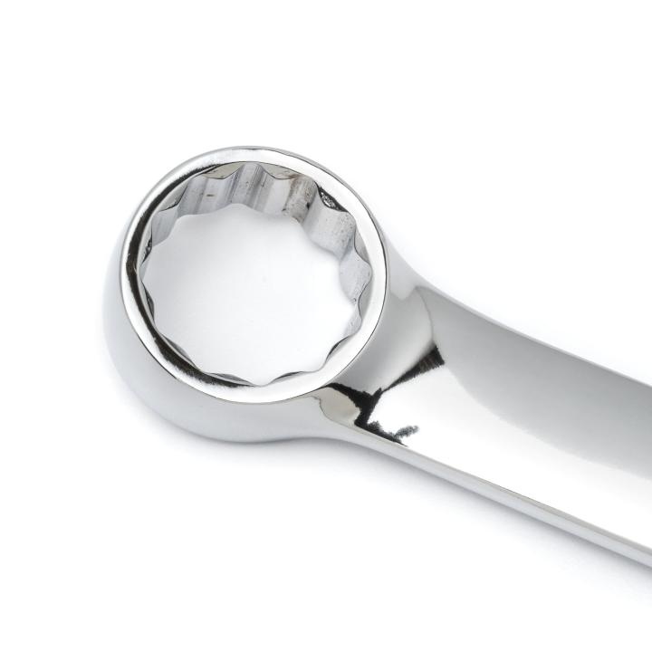 The GEARWRENCH combination wrenches are durable tools for most jobs. They are made from alloy steel with either a full polish or satin finish that resists rust & corrosion. The off-corner loading design on both ends provides a stronger grip on fasteners, reduces fastener rounding, and delivers up to 25% more torque to the fasteners. Sizes are stamped on the beam for quick, easy, & permanent identification. The box end is offset 15° for increased access to fasteners. Available in stubby & long pattern lengths and 6 & 12 point, the GEARWRENCH combination wrenches are a must have for every toolbox.