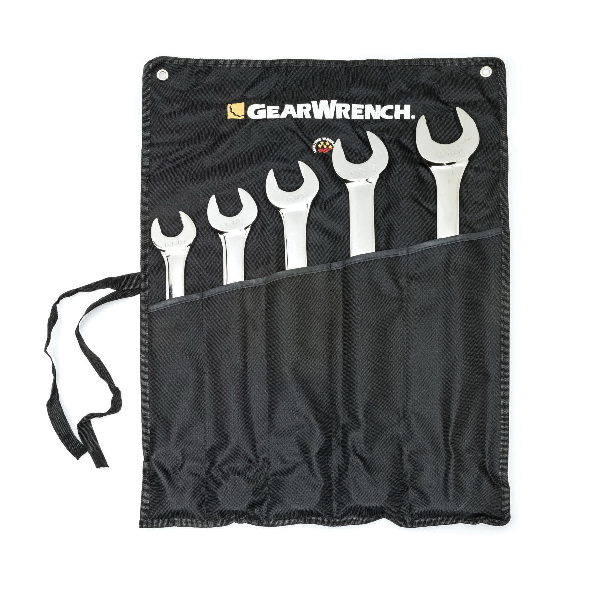 Includes81733 1-1/6 in, 81734 1-1/8 in, 81735 1-1/4 in, 81749 1-5/16 in and 81750 1-1/2 in Combination Wrenches and Tool Roll