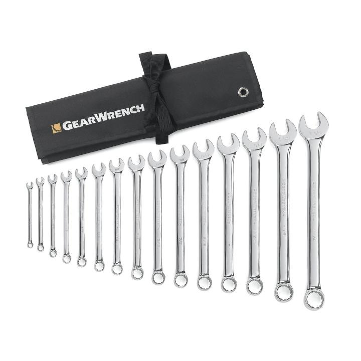 GEARWRENCH® 81918 Long Length Combination Non-Ratcheting Wrench Set, 15 Pieces, 15/16 to 1-1/4 in