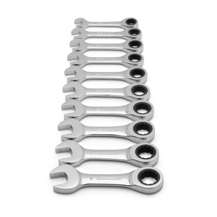 GEARWRENCH® 9520D Stubby Length Combination Ratcheting Wrench Set, 10 Pieces, 10 to 19 mm, Polished Chrome