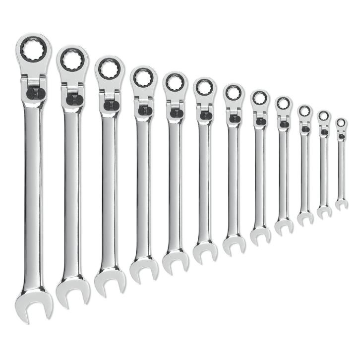GEARWRENCH Original ratcheting wrenches combine the speed of a ratchet with the access and control of a wrench. They offer the ease of 5 degrees of movement to turn fasteners, versus 30 degrees on standard combination wrenches. The small ratcheting box end head design enables access to tight spots where a ratchet won't fit. The open end allows for easier access on tough to reach spots, making jobs go faster and easier. This set is a great addition to any mechanic tools collection.