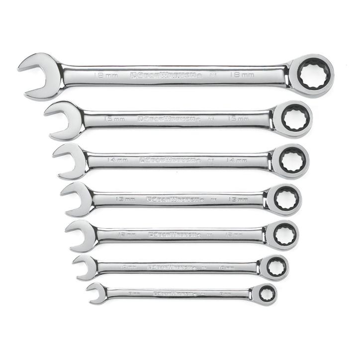 Includes9114D 14 mm, 9115D 15 mm, 9118D 18 mm, 9112 12 mm, 9113D 13 mm, 9108D 8 mm and 9110D 10 mm Combination Ratcheting Wrenches