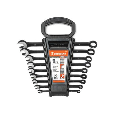 Crescent® CCWS9BM Long Pattern Combination Wrench Set, 9 Pieces, 8 to 19 mm, Manganese Phosphate