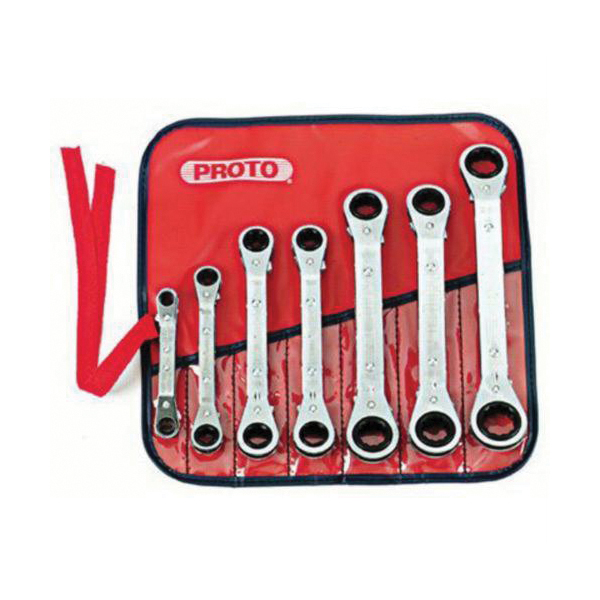 Proto® J1180MA Ratcheting Reversible Offset Double Box End Wrench Set, Metric, 7 Pieces, 7 x 8 to 19 x 21 mm, Full Polished