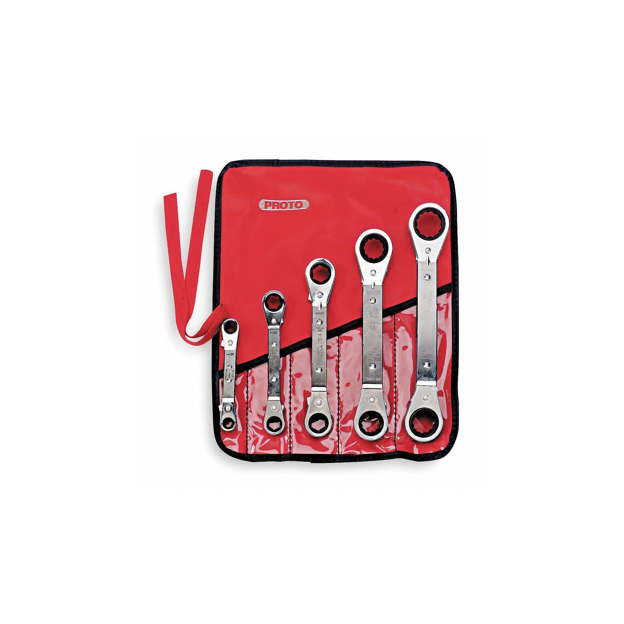 Proto® J1180A Ratcheting Reversible Box End Wrench Set, Imperial, 5 Pieces, 1/4 x 5/16 to 3/4 x 7/8 in, Full Polished