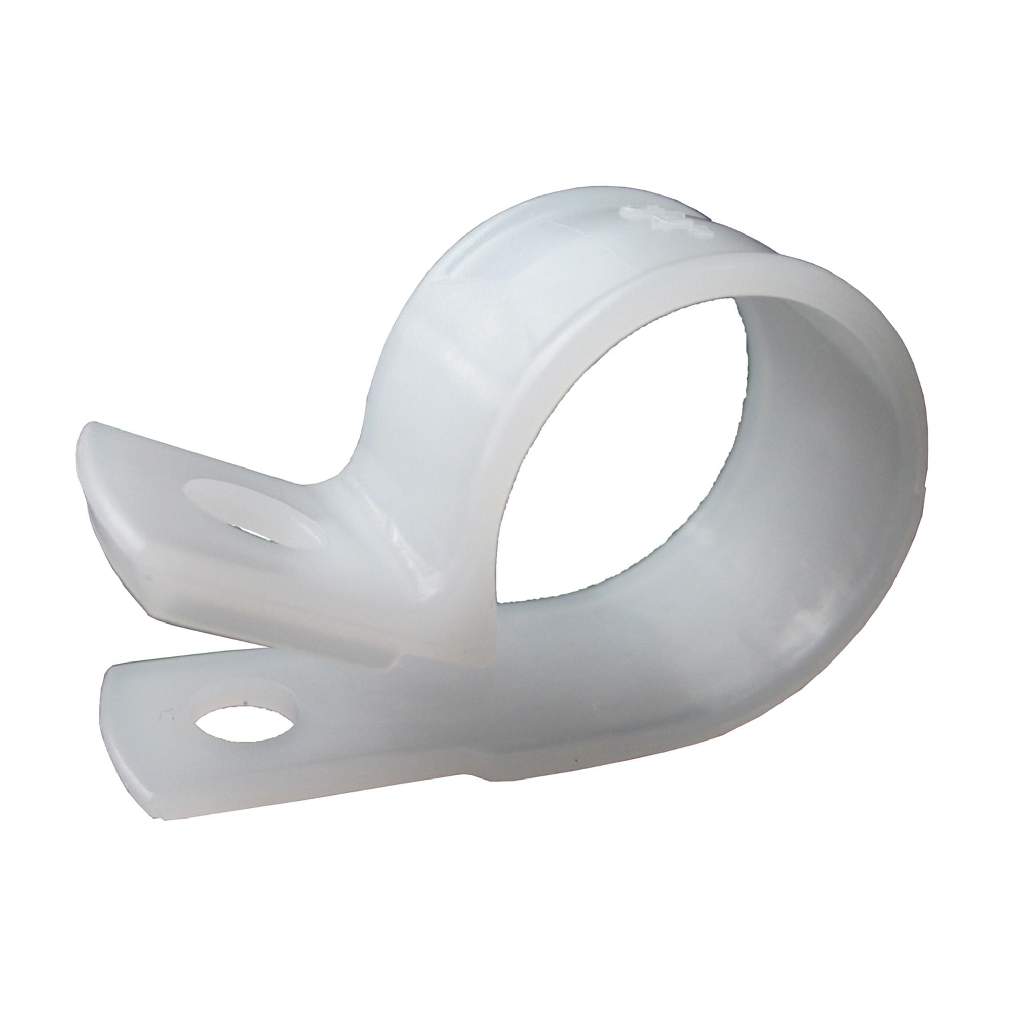 Gardner Bender plastic clamps are tough, durable, yet extremely lightweight and feature clean, smooth edges to minimize damage to cables. Our contractor-friendly design facilitates quick installations saving time and money. Clamps securely hold harnesses, cables and tubing up to 3/4 in diameter. Designed for use in construction, maintenance and assembly-line applications, control cabinets, panels and general applications. Choose these clamps for superior performance indoors. Working temperature range: -54 C (-66 F) to 170 C (340 F) Instructions: position clamp at desired location, insert cable(s) or tube(s), fasten with screw or nail.