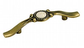 BURNISHED BRASS FURNITURE PULLS WITH PORCELAIN INSERT. 4-15/16" LENGTH WITH 3" CENTER.-JWH206119 >