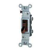 BROWN TOGGLE FRAMED 3-WAY AC QUIET SWITCH, 15 AMP, 120V, RESIDENTIAL GRADE, NON-GROUNDING, QUICK WIRE PUSH-IN & SIDE WIRED. 527264-LEV14512 >