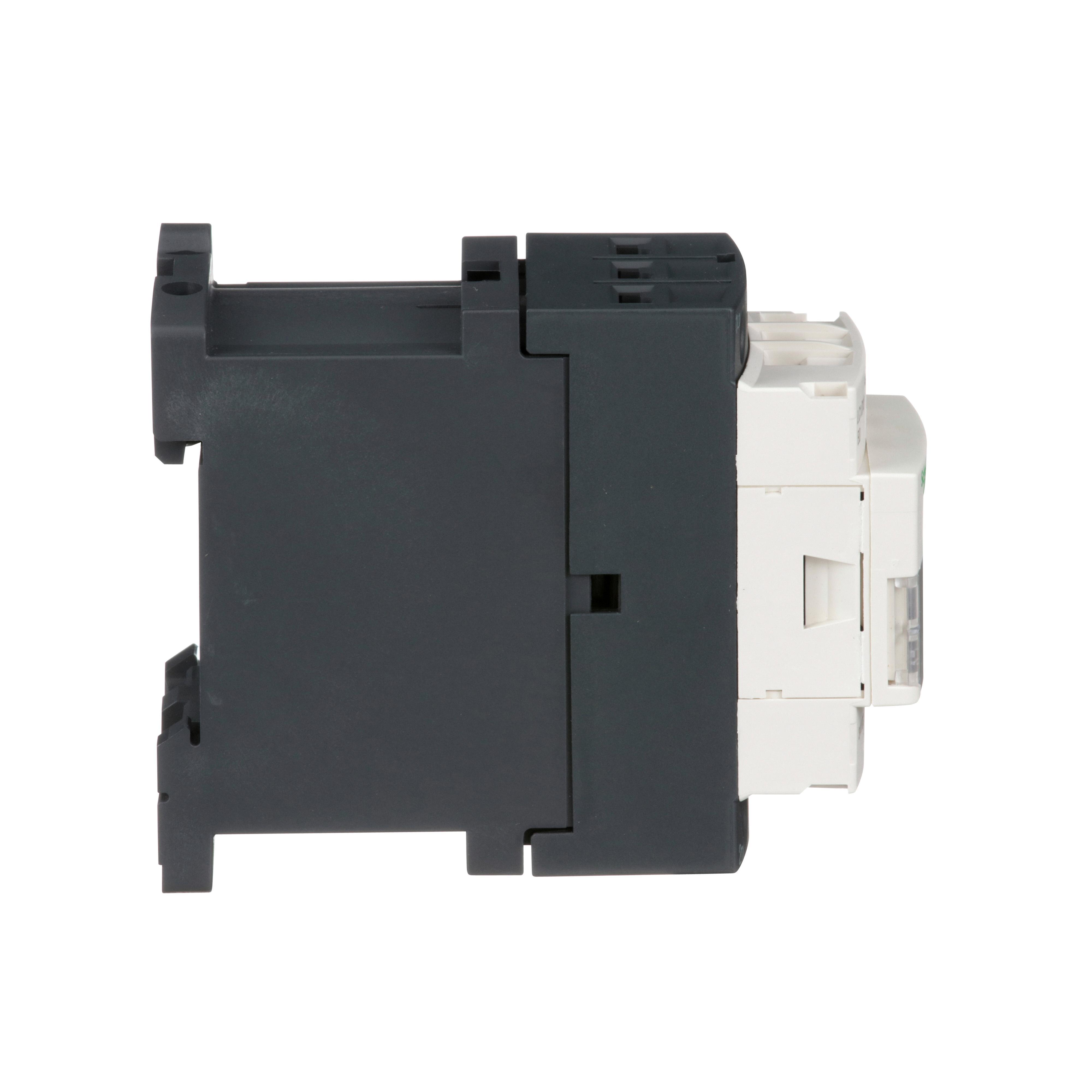 TeSys Deca contactor, 3 poles (3NO), for motor control applications up to 12A/690V AC-3/3e (5.5kW@400V). They can be used to create motor starters for almost any type of application. It provides a 24V DC coil with transient suppressor module, 1NO+1NC built-in auxiliary contacts (NC mirror certified), connection by screw clamp terminals. For operating rates until 3600 cycles/hour and environments until 60°C, it procures high reliability and durability. Compact (45mm width), DIN-rail mounting or screw fixing. Contactor is rated for 3HP at 200-208VAC, 3HP at 240VAC, 7.5HP at 480VAC and 10HP at 600VAC three phase. Multi standards certified (IEC, UL, CSA, CCC, EAC, Marine). When used with a 480VAC up to 35A circuit breaker, this contactor can have a SCCR up to 85kA. When used with up to a 600VAC 30A Class J or CC fuse, this contactor can have a SCCR up to 100kA. Contactor is supplied with a 24 VDC coil with transient suppressor module. Contactor has one normally open and one normally closed auxiliary contact built-in as standard. The NC contact is mirror certified. Screw clamp terminals are used for load and auxiliary connections. An extensive line of accessories makes it easy to meet the requirements of most applications. The contactor is 3.03 inches tall, 1.77 inches wide and 3.74 inches deep. It weighs 1.07 lbs. Contactor is certified to UL, CSA, IEC, CCC, EAC and Marine standards.