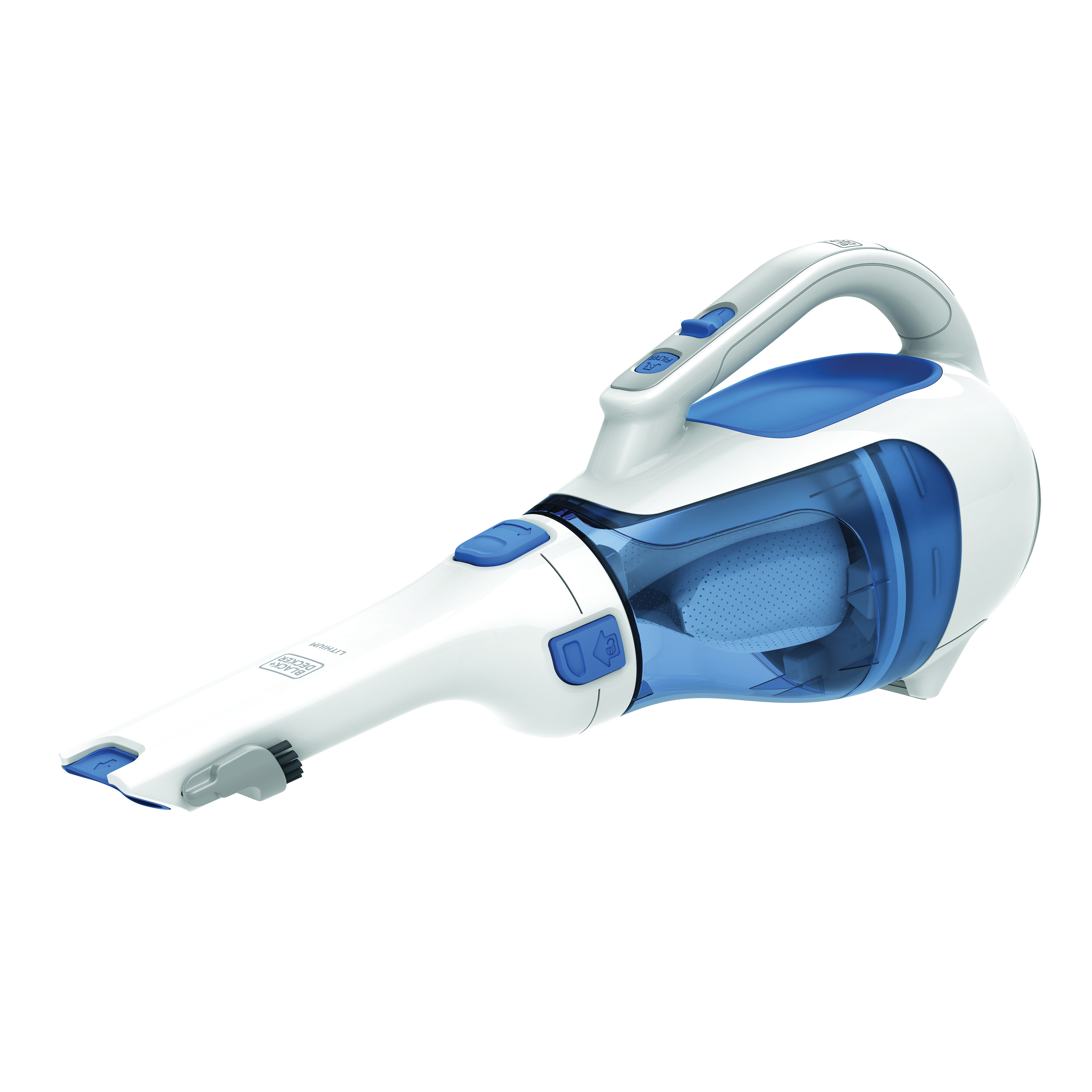 Black+Decker® HHVI320JR02 dust buster cordless lithium hand Vacuum, magic blue, is ideal for multipurpose cleaning in your home, garage, auto, boat. The lithium technology provides strong suction and extended run time. It has a washable bowl (20.6 Oz) and filter which allows for thorough cleaning between jobs. The translucent, bagless dirt bowl makes it easy to see dirt and easy to empty. This VAC has a rotating nozzle for a comfortable hand position when accessing hard to reach areas, along with an extendable crevice tool that provides access to hard to reach areas and a flip-up brush which allows you to dust and Vacuum upholstery.