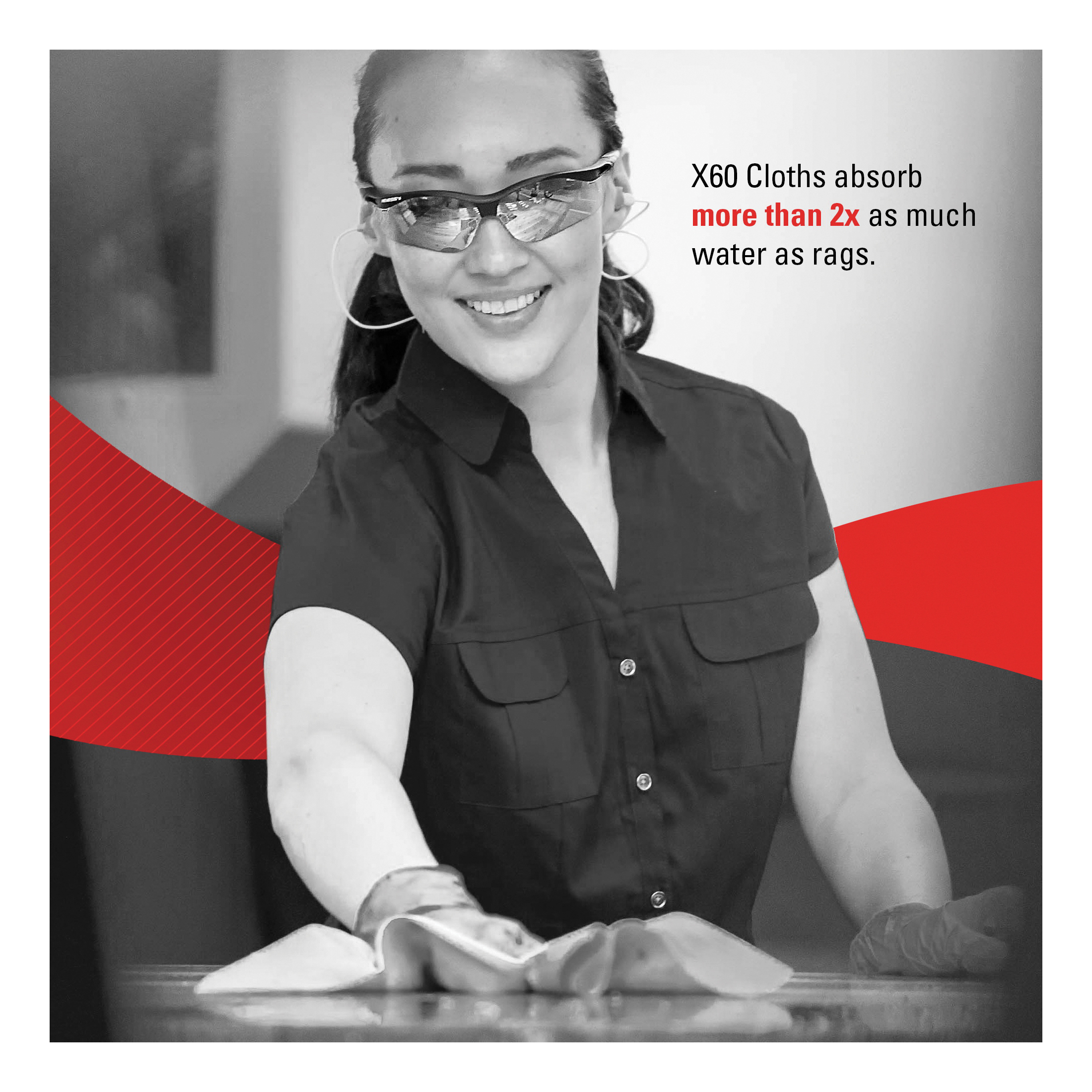 - WypAll* X60 cloths are absorbent and reinforced to stay strong for cleaning performance in light duty tasks