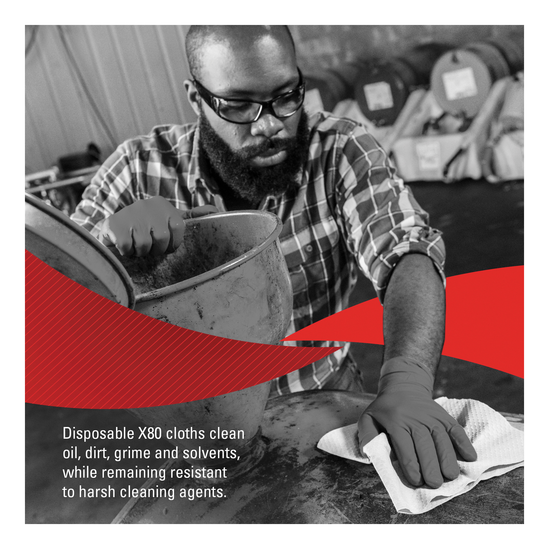 - Heavy industrial tasks, cleaning grease, grime and oil, solvent wiping, cleaning rough surfaces, or any other challenging task are where our X80 cloths play best
