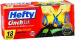HEFTY TALL KITCHEN BAG HAS ACTIVE TEAR-RESISTANT TECHNOLOGY AND IMPROVED SECURE-GRIP DRAWSTRING. STURDY PLASTIC CONSTRUCTION. WHITE. 13 GAL. CAPACITY,