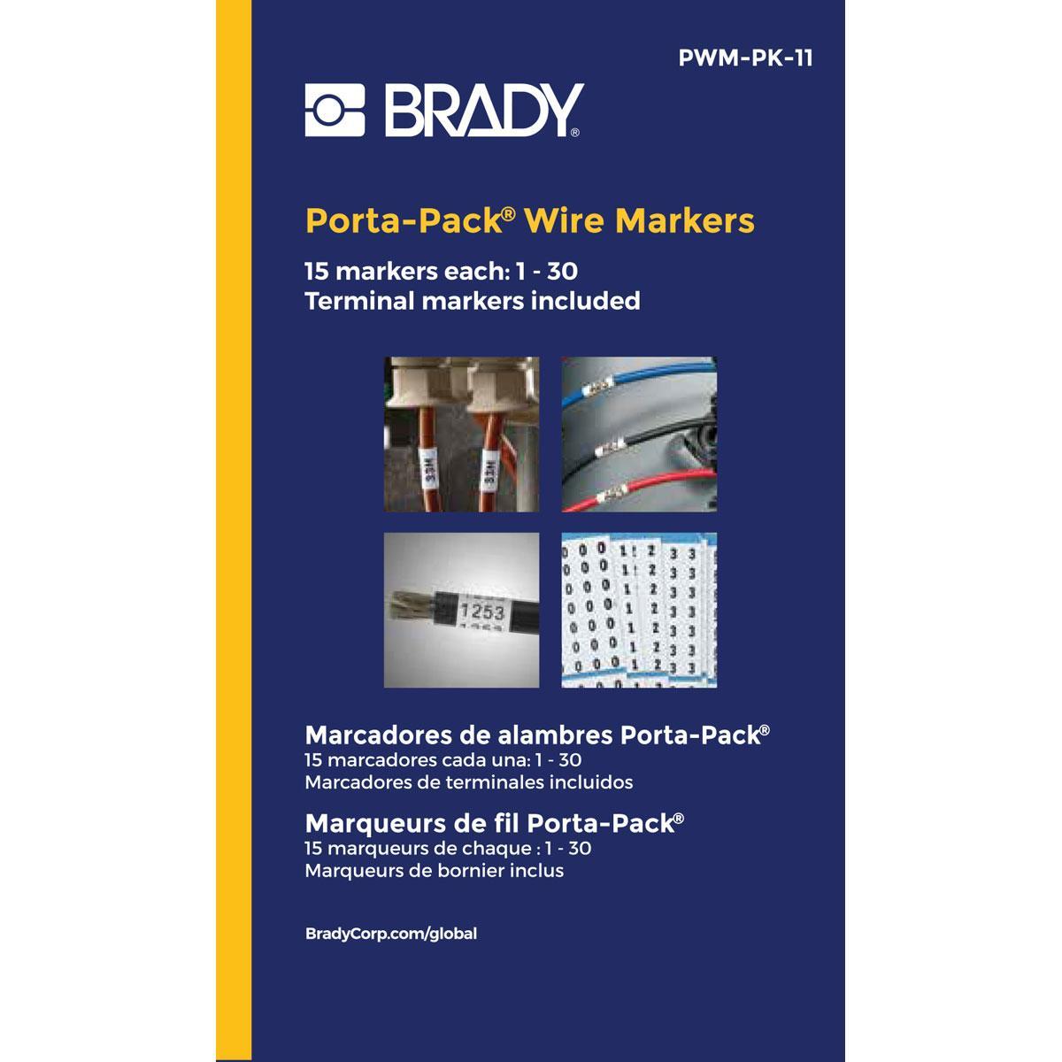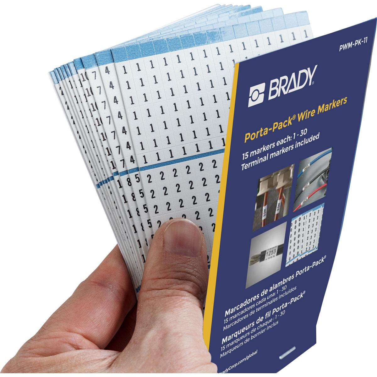 Brady® Porta-Pack® PWM-PK-11 Die-Cut in Book Format Pre-Printed Wire Marker Book, 1-1/2 in L x 0.2 in W, Black on White, B-500 Vinyl Coated Fabric