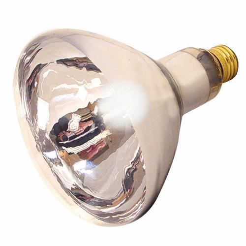 SATCO NUVO offers a full line of incandescent heat lamps, providing a reliable and versatile heating solution designed to generate focused heat for a variety of applications. With four unique shapes to choose from-PAR38, BR38, R40, and BR40-these lamps combine functionality and performance to meet diverse needs. Featuring a standard E26 medium base and operating at 120 volts, they emit a comforting glow that's perfect for maintaining warmth. Available in both red and clear finishes, select models are enhanced with a shatterproof coating for added safety and durability. Engineered to emit infrared radiation, these heat lamps excel at providing targeted heat, making them ideal for keeping poultry and piglets warm in brooders, maintaining food at serving temperatures, or adding comfort to bathrooms. Their practical design and dependable performance make them an excellent choice for agricultural, commercial, and residential settings alike.|SATCO NUVO's S4750 incandescent heat lamp offers a reliable and versatile 125-watt heating solution, delivering focused warmth for indoor applications. Designed with a standard E26 medium base and operating at 120 volts, it emits a comforting glow ideal for maintaining heat. This R40-shaped bulb features a clear finish and is intended for indoor use only. Engineered to emit infrared radiation, it provides targeted heat, making it perfect for keeping poultry and piglets warm in brooders, maintaining food at serving temperatures, or adding comfort to bathrooms. With its practical design and dependable performance, this lamp is an excellent choice for agricultural, commercial, and residential indoor use.