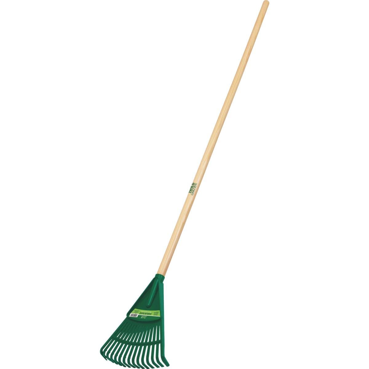 14 TINE POLY SHRUB RAKE WITH 48" LACQUERED PINE HANDLE. 8" POLYPROPYLENE HEAD. TOTAL LENGTH: 54.5"