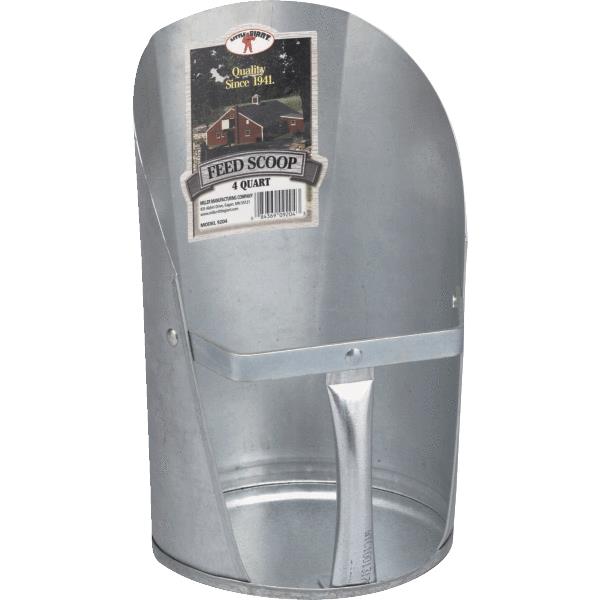STURDY FEED SCOOP. FEATURES DURABLE GALVANIZED CONSTRUCTION WITH A LARGE, EASY-GRIP HANDLE. 4-QUART CAPACITY