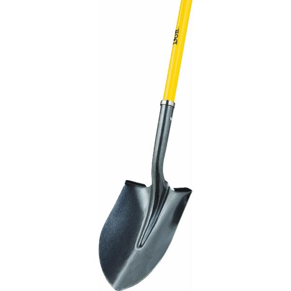 THE 46" ROUND POINT SHOVEL IS A VERSATILE LIGHT-DUTY TOOL DESIGNED FOR DIGGING, PLANTING, AND MOVING LOOSE MATERIALS SUCH AS SOIL, MULCH, AND GRAVEL. STEEL COLLAR STRENGTHENS HANDLE AND SOCKET CONNECTION. STURDY FIBERGLASS HANDLE WITH WINYL GRIP.