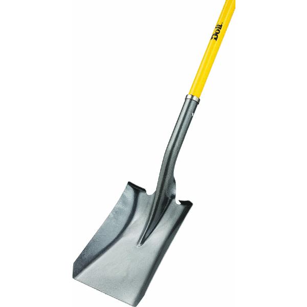 THE 46" SQUARE POINT SHOVEL IS A RELIABLE LIGHT-DUTY TOOL DESIGNED FOR SCOOPING, LIFTING, AND MOVING LOOSE MATERIALS, SUCH AS SOIL, SAND, AND GRAVEL. IT FEATURES A TEMPERED STEEL BLADE THAT PROVIDES STRENGTH AND DURABILITY FOR EVERYDAY GARDENING AND LANDSCAPING TASK. IT HAS A STEEL COLLAR FOR STRENGTH AT THE HANDLE AND SOCKET CONNECTION, WITH A FIBERGLASS HANDLE AND A STEEL BLADE.