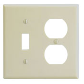 1 GANG 1 TOGGLE 1 DUPLEX DEVICE COMBINATION WHITE WALL PLATE, STANDARD SIZE, THERMOSET, DEVICE MOUNT-LEV86005 >