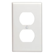 1 GANG WHITE DUPLEX DEVICE RECEPTACLE WALL PLATE, STANDARD SIZE, THERMOSET, DEVICE MOUNT 531598-LEV88003 >
