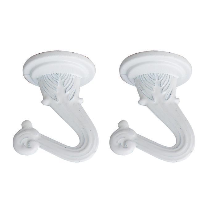 These white finish swag hooks are ideal for medium weight lighting fixtures or accessories. These 1-1/2 in hooks have a 30 lb load rating, so you can hang fixtures knowing they will have proper support. The white finish will easily complement most light fixtures. Use this set of two to coordinate multiple fixtures or hang a larger one. The hooks come with the hardware needed for installation.