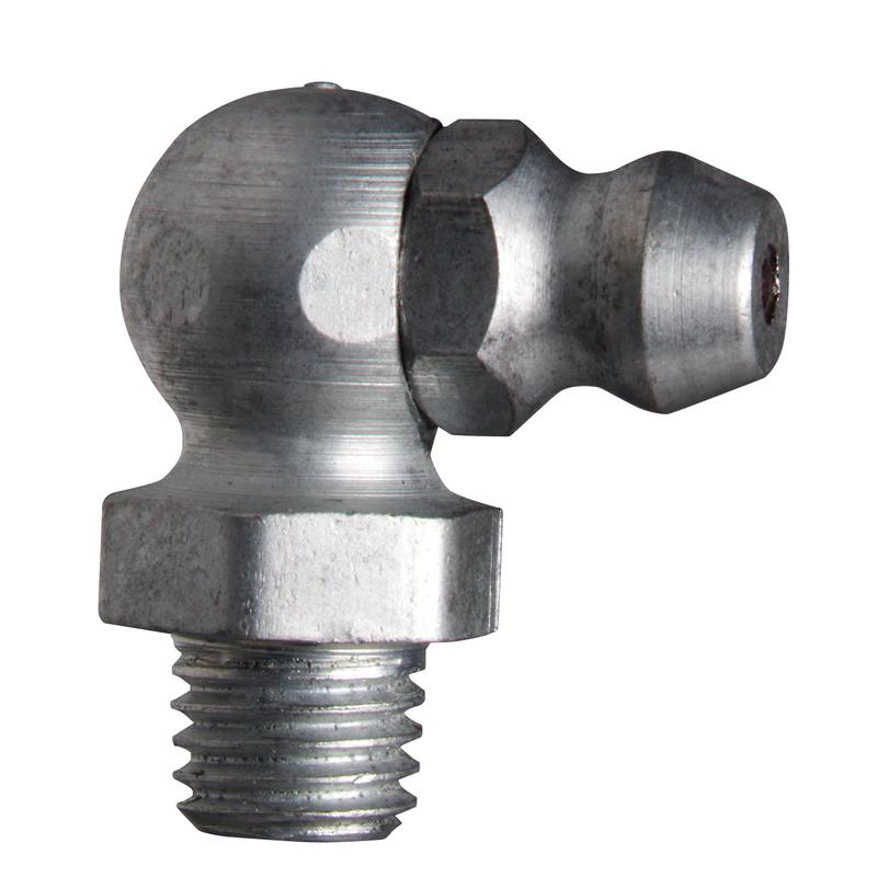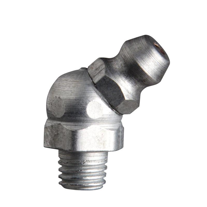 Alemite® 1637-B1 45 deg Thread Fitting, 1/4-28 Taper Thread, 13/16 in OAL, 13/64 in L Shank, Trivalent Zinc Plated