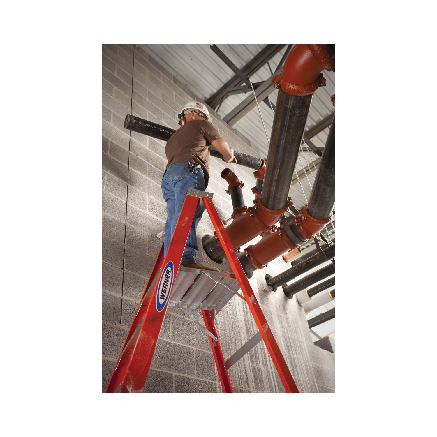 WERNER® P6208 P6200 Type IA Platform Ladder, 8 ft Ladder, 300 lb Load, 14-5/8 in W, Aluminum Spreader/Fiberglass