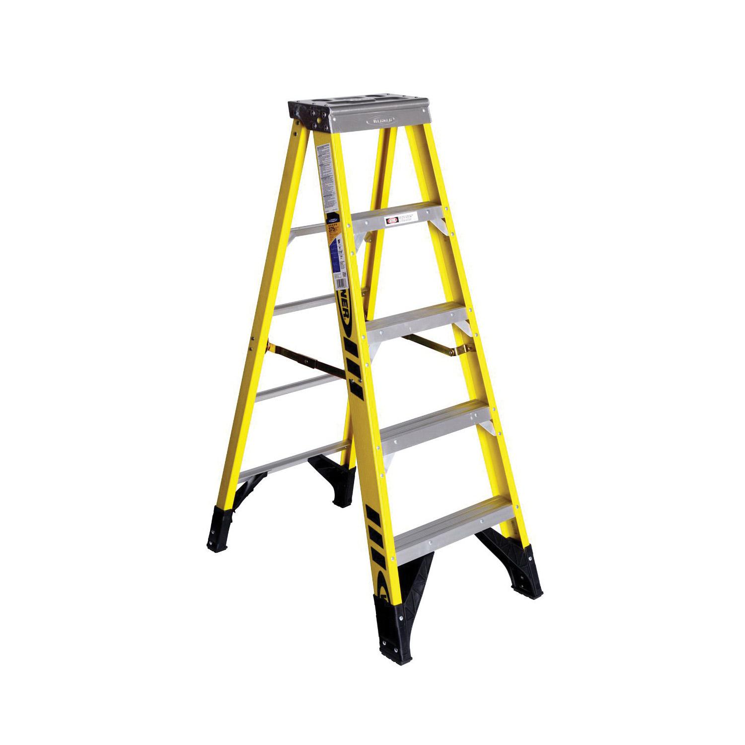 WERNER® 7305 7300 Type IAA Single Sided Step Ladder, 5 ft H Ladder, 375 lb Load, Fiberglass, 4 Steps