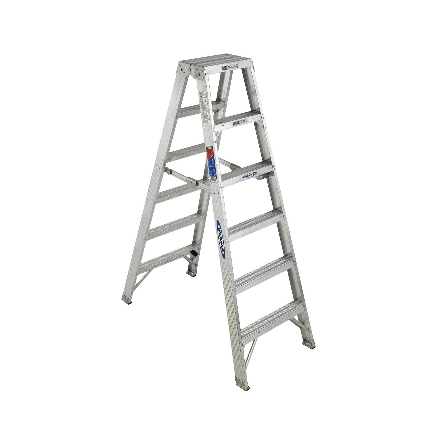 WERNER® T376 T370 Type IA Twin Ladder, 6 ft H Ladder, 300 lb Load, 5 Steps, Aluminum