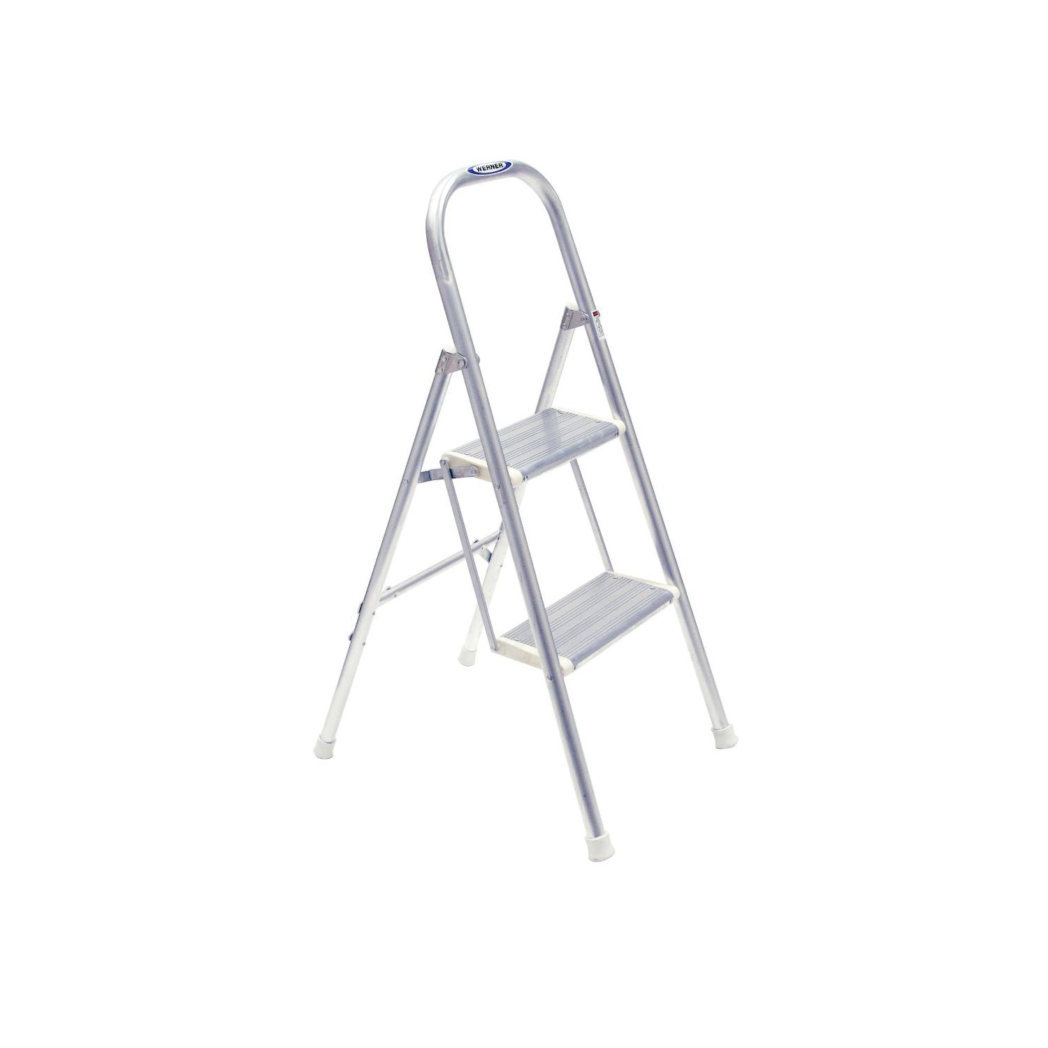 The 244 2 step type III aluminum step stool has a duty rating of 200 pounds and features slip resistant steps and comfortable, tubular rails. The feet are mar resistant. This ladder is light weight and easy to open and close. It folds to 3 inches for compact and convenient storage.